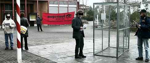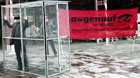 Aktion gegen Luftmangel im Asylwesen Münchenstein, Einkaufszentrum Gartenstadt 2. März 2002 |