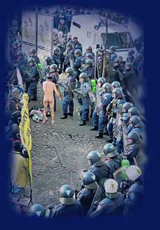 Die Repression in Basel nimmt zu und verstärkt sich. Um nur einige Beispiele zu nennen: Im März 2003 werden in Basel über 100 jugendliche Friedensbewegte auf der Mittleren Brücke eingekesselt – nachher werden ihnen Fingerabdrücke, Verbrecherfotos und DNA-Proben abgenommen Am Birsköpfli, einem wunderbaren Ort an lauen Sommerabenden, sorgen Polizei und Hilfssheriffs ab 22 Uhr für (Friedhofs)-ruhe und Ordnung Im Januar 2005 wird auf dem Barfüsserplatz eine Demonstration gegen das WEF mit martialisch übertriebenem Aufwand eingekesselt und verunmöglicht Seit Jahren kämpft das Kulturfloss am Rhein mit bürokratischen Hürden und wehe aus dem Lautsprecherboxen kommt nach 22 Uhr noch ein Ton oder wird noch ein Bier ausgeschenkt In Altstetten wird ein Zug voller FCB-MatchbesucherInnen gestoppt und die Leute werden stundenlang wie Schwerstverbrecher behandelt Die Polizei wirft mit Ausgrenzungs-Verfügungen und Wegweisungs-Befehlen nur so um sich Für Ausrüstungen der Polizei ist in unserem Kanton scheinbar unbeschränkt Geld zur Verfügung. Erst gerade hat man sich Riot-Räumungs-Fahrzeuge angeschafft und überlegt sich Taser-Waffen zu kaufen Schon mal versucht am Rheinbord nach 22 Uhr mit Freunden zu plaudern und eventuell noch Musik zu hören / zu machen? Wehren wir uns gemeinsam gegen zunehmende Repression und Schikanen im öffentlichen Raum, so lange wir noch können, bevor Basel zum Friedhof verkommt. (Text des Wettbewerbsflyers) |