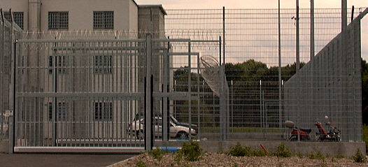 aussen"Dass das neue Ausschaffungsgefängnis direkt neben der Empfangsstelle an der Grenze zu stehen kommt, ist kein Zufall. Damit wird allen Neueintreffenden signalisiert: Hier werdet Ihr landen. Es dient zur Disziplinierung der Flüchtlinge und bewahrt die Basler Bevölkerung davor, mit einem Hochsicherheitsgefängnis in der Stadt konfrontiert zu sein. Im weiteren gibt es Pläne, am gleichen Standort ein weiteres Defängnis zu bauen, nämlich den Ersatzbau für das Schällemätteli.