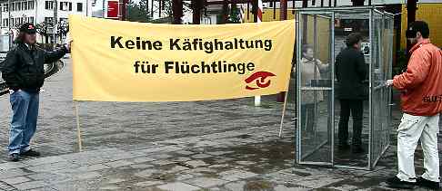 Aktion gegen Luftmangel im Asylwesen Münchenstein, Einkaufszentrum Gartenstadt 2. März 2002 |